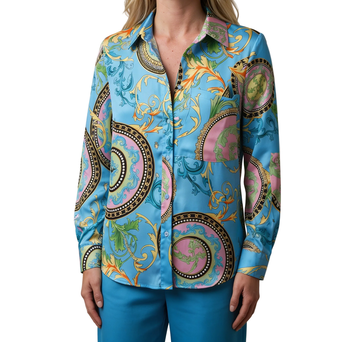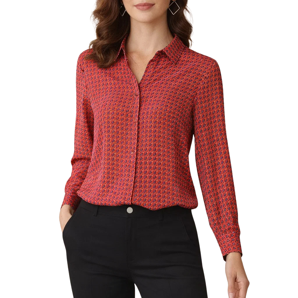 Angelina – Elegante Bedrukte Damesblouse met Lange Mouwen De Angelina blouse combineert een verfijnd patroon...