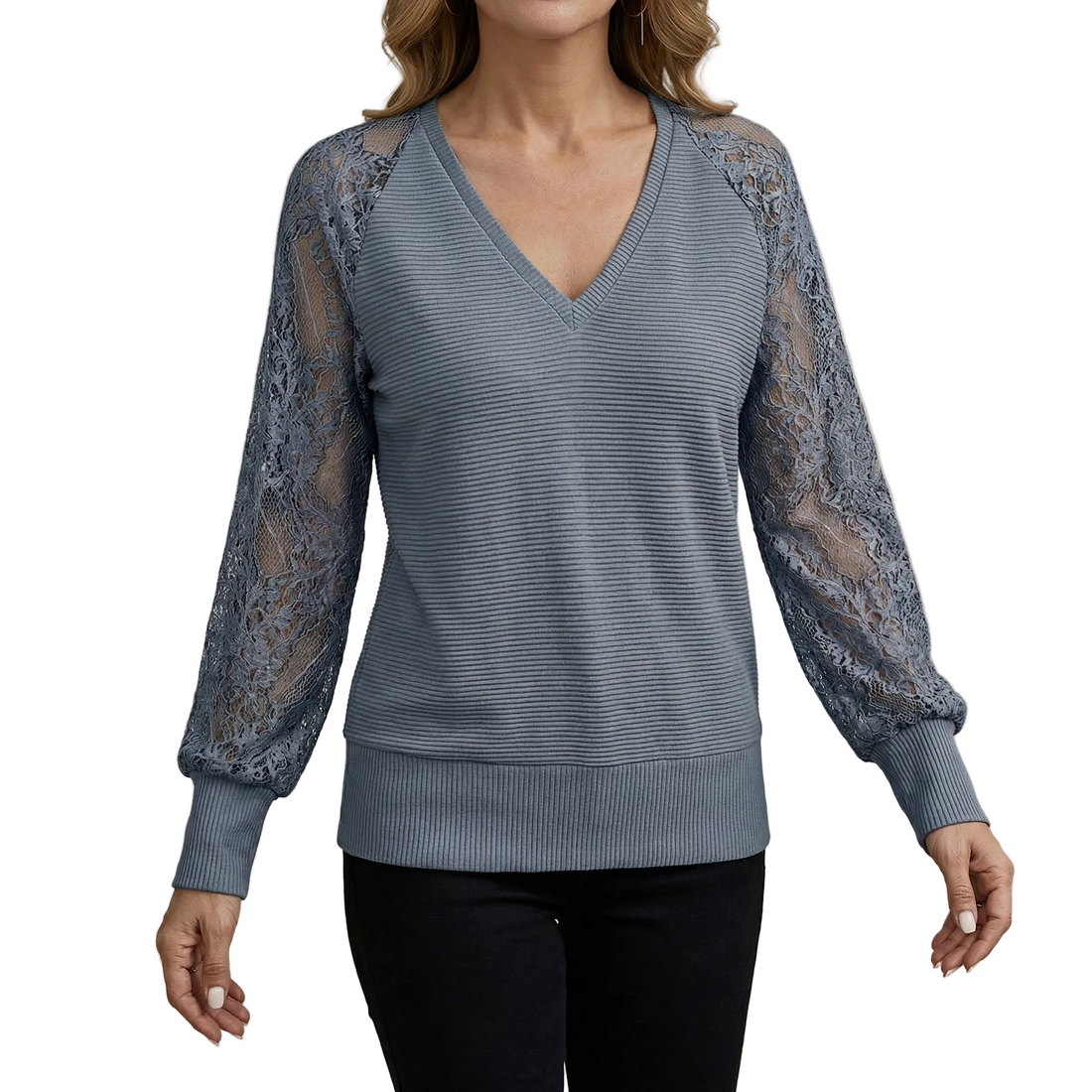 Jovy – Elegante V-hals Top met Kant voor Dames De Jovy V-hals top combineert verfijning...