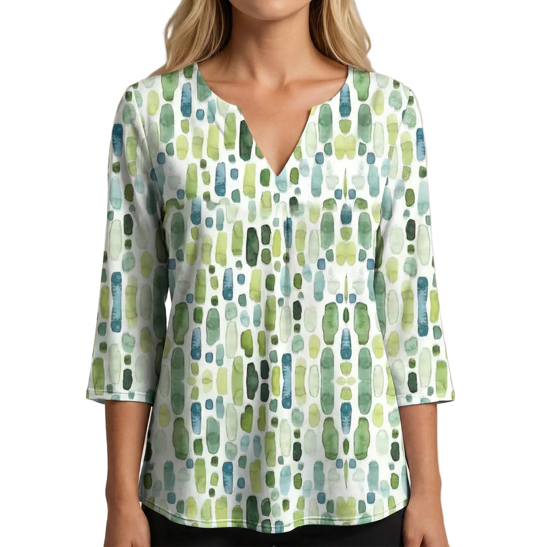 Leona – Elegante Dames Top met Geometrische Print De Leona top combineert comfort met een...