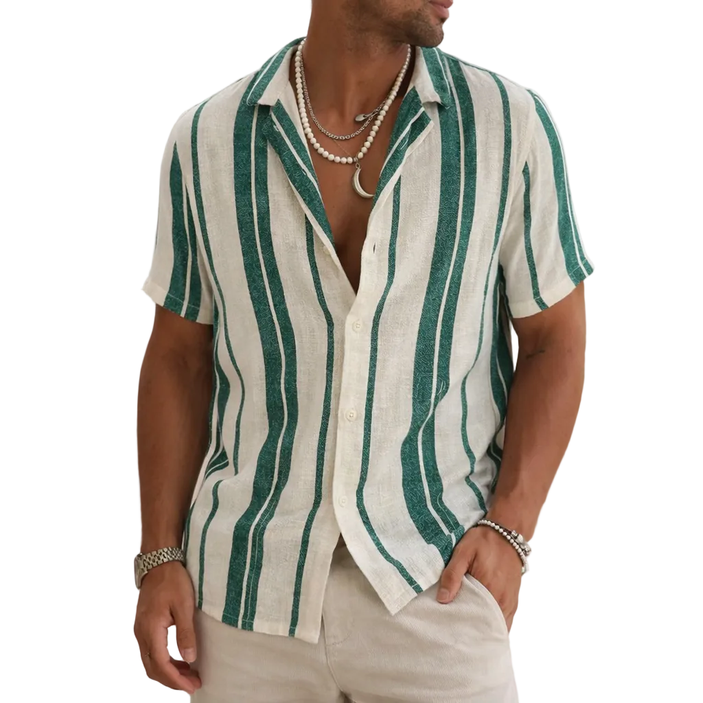 Zen – Gestreepte Vintage Zomerblouse voor Heren Deze herenblouse is ontworpen met een luchtige pasvorm...