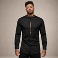 De Dorian blouse combineert een verfijnde uitstraling met moderne elegantie. Het minimalistische ontwerp wordt versterkt door stijlvolle gouden borduurdetails op de kraag en manchetten, waardoor dit overhemd een opvallende en luxueuze look krijgt. Dankzij de slanke pasvorm en hoogwaardige afwerking is deze blouse perfect voor formele gelegenheden, avondkleding of stijlvolle evenementen.