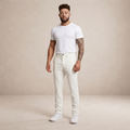 De Enrith broek combineert een strakke, moderne uitstraling met comfortabel draaggemak. Dankzij het lichte en ademende materiaal is deze broek perfect voor lange werkdagen en formele gelegenheden. Het tijdloze ontwerp zorgt voor een verzorgde look die moeiteloos past bij zowel een overhemd als een blazer.