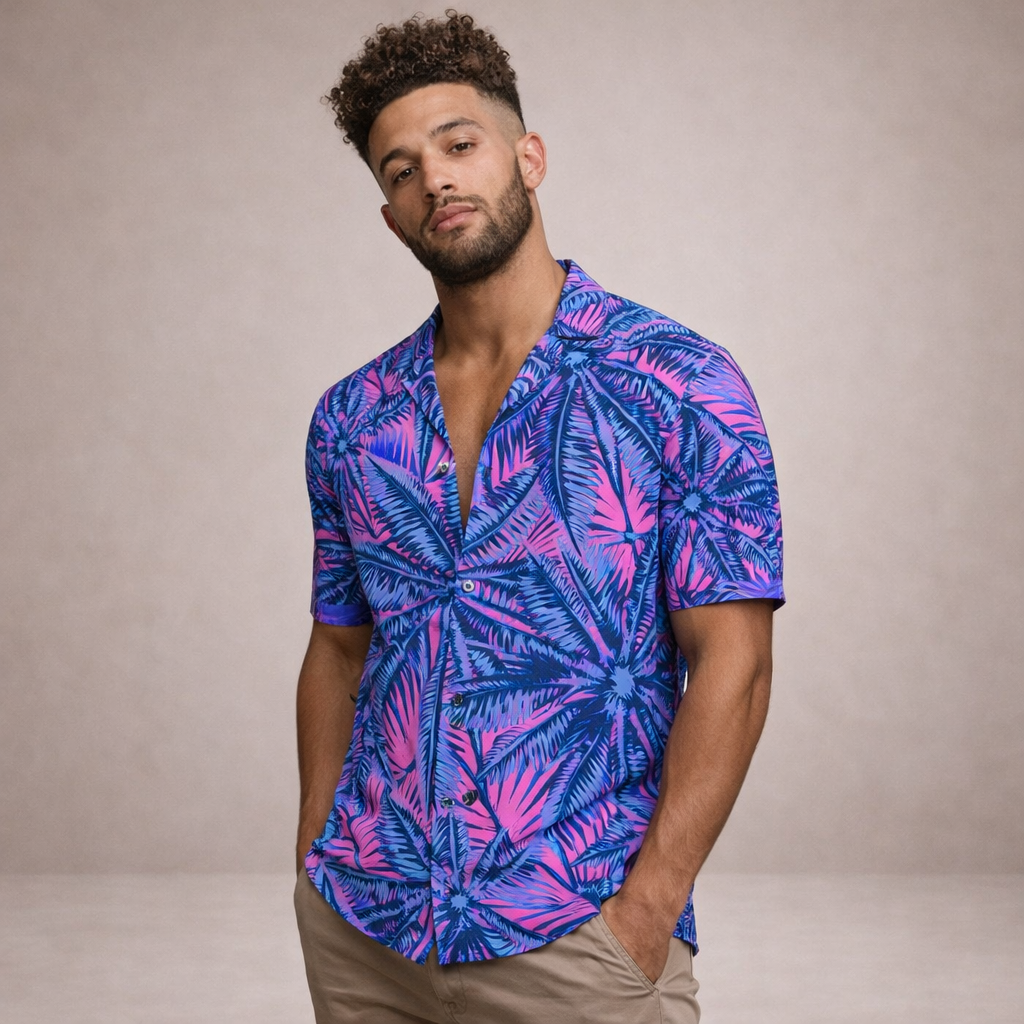 De Jack blouse is ontworpen voor comfortabel en stijlvol dragen tijdens warme zomerdagen. Deze herenblouse is uitgevoerd in hoogwaardig materiaal dat prettig aanvoelt op de huid en geschikt is voor hogere temperaturen. Het Hawaiiaanse bloemenpatroon geeft de blouse een uitgesproken zomerse uitstraling, terwijl de klassieke kraag en doorlopende knoopsluiting zorgen voor een verzorgde afwerking. Dankzij de casual pasvorm is de blouse geschikt voor uiteenlopende informele gelegenheden, zoals stranddagen en zomerfeesten.